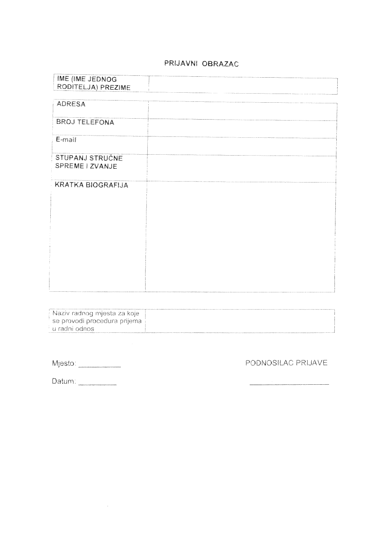 Javni oglas je objavljen 18.03.2026. godine u Večernjem listu.